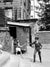Kids are having a pretend sword battle near a public urinal in the Montmartre neighborhood.