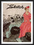 A model struts back and forth on a runway, showcasing the latest 1957 trends, under the observant eyes of stylish fashion purchasers and reporters.