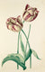 This excellent print originates from a watercolour painting of a Tulipa identified as 'von Aerench', credited to the artist August Wilhelm Sievert. The painting is part of a collection of watercolours and drawings named 'Hortus florum imaginum', which dates back to around 1730. Sievert was an active artist in the years 1720-1740 and from 1727, he held the dual role of botanical artist and Inspector of gardens for Karl Wilhelm, the Margrave of Baden-Durlach in Germany. Notably, eleven drawings from this collection were later reproduced around 1760-80 as hand-coloured engravings in C J Trew's book 'Hortus Nitidissimus'.