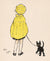 A young girl named Pat Leslie, stylishly dressed in a yellow coat and hat, is seen taking her small black dog, Smut, for a stroll. This scene is beautifully captured on the cover of Us, designed by the talented Cecil Aldin.
