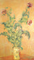 Claude Monet, a French artist from the late 1800s, was a key figure in the Impressionist art scene. He spent a good portion of his artistic career creating numerous paintings of flowers in vases. One of his earlier works, 'Purple Poppies', beautifully showcases wild purple flowers tumbling out of a white, intricately designed vase.