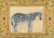 This is a piece depicting a zebra, created using opaque watercolor and gold elements on paper. It's a Mughal artwork dating back to 1621.