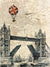 The artwork named 'Tower Bridge Balloon' brings a London vibe to life, depicting the well known Tower Bridge alongside an age-old balloon and set against a historical map. It's part of a print series which boasts beautifully antiquated backdrops for a variety of fascinating themes. These mixed media pieces are created using pages from vintage books, assembled in the foreground in a way that aligns flawlessly and adds charm to each artwork.