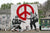 This is a photo showcasing street art, which is believed to be a work by Banksy.