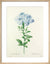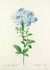 The print you're looking at is of remarkable quality and is inspired by a colorful, hand-completed stipple engraving named Dentelaire bleu-ciel: Plumbago caerulea. This engraving was done by Joseph Marie Bessin, who lived from 1765 till an unknown date, and it's based on an original piece by Pierre Joseph Redouté, who lived between 1759 and 1840. The engraving was published in parts as a part of P. J. Redouté's collection called Choix des plus belles fleurs in Paris, between 1827 and 1833. Each part of the collection contained four plates, and this one is from Plate 34.