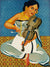 Check out this lithograph done in Kalighat-style. It features a courtesan playing a violin and it's from Calcutta, 1930.