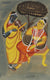 Here we have a painting from Kalighat, depicting Krishna serenading Radha with a violin. The medium used is opaque watercolour on paper, and it was created in Kolkata around 1885.