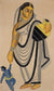 Around 1890 in Kolkata, Yasoda was depicted taking Krishna for a walk in a Kalighat painting. This beautiful piece was created using watercolor and tin alloy on paper.
