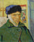The artwork 'Self-portrait with bandaged ear' was created by well known Dutch post-impressionist painter Vincent Van Gogh in 1889. During a heated disagreement with fellow artist Paul Gauguin, Van Gogh experienced a seizure while holding a razor, resulting in him cutting off a piece of his left ear. This self-portrait features the bandage he used to cover his ear. The painting is characterised by heavy brush strokes, mostly arranged vertically to add depth and texture to the otherwise flat canvas. The color of this print is perfectly matched to the original, with approval from the Courtauld Gallery. Every sale of this print helps support the Courtauld's mission and work.
